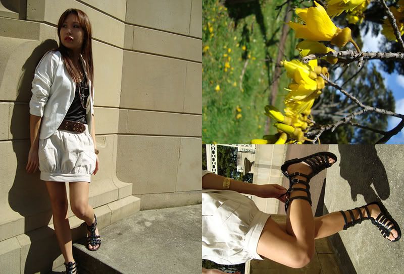 Oh, and the outfit. Blazer, vintage. Top, Supre. Skirt, Valleygirl. Gold cuff, eQuip. Sandals, will be up for auction soon!