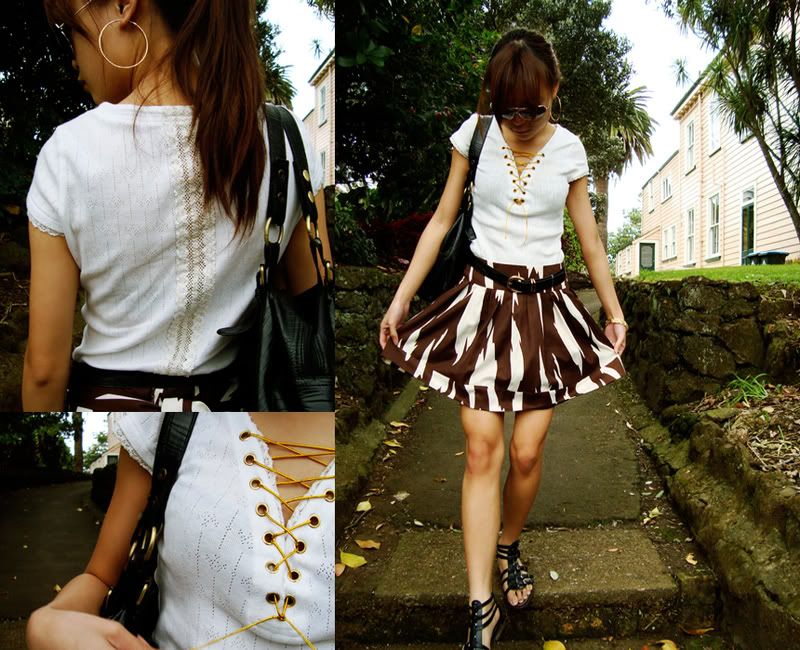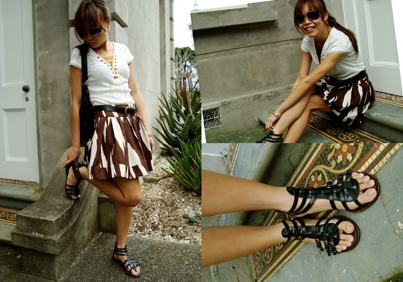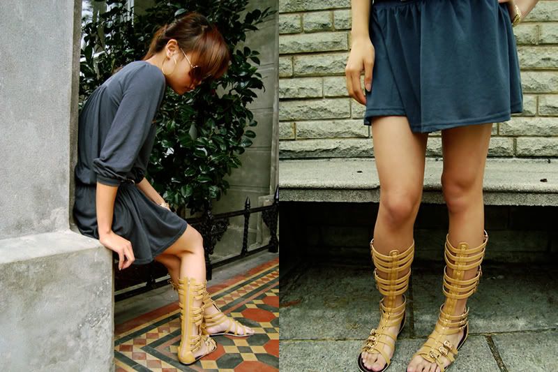 Lace up top, $10. Gladiators (in brown), $45.Tall gladiator sandals, $55. (Sold)